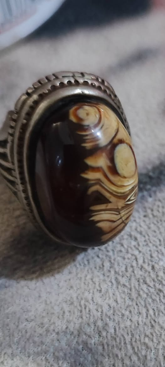 عقيق جزع يماني • فضة ٩٢٥ • صياغة قديمة