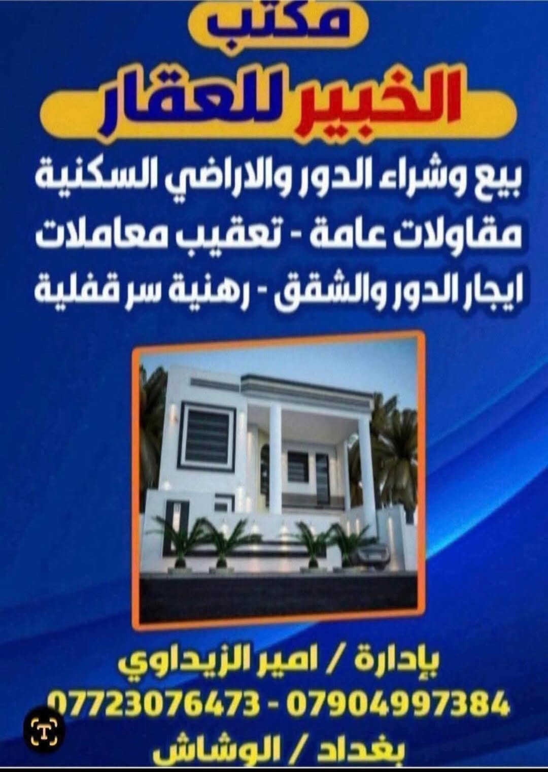 بيت للبيع مسلح طابقين بناء ٢٠١٧ مساحة ٥٠ متر واجهة ٥ متر نزال ١٠ متر يحتوي على صالة + حوليّ مع مطبخ + منور + خدمات صحية الطابق الثاني غرفة نوم كبير ة+ حولي + بيتونة + صطح شتايكر البيت في منطقة الوشاش على شطيط طابو صرف تلفون ***********وتساب ***********وتساب***********او مراجعة مكتب الخبير للعقار ومن للة التوفيق