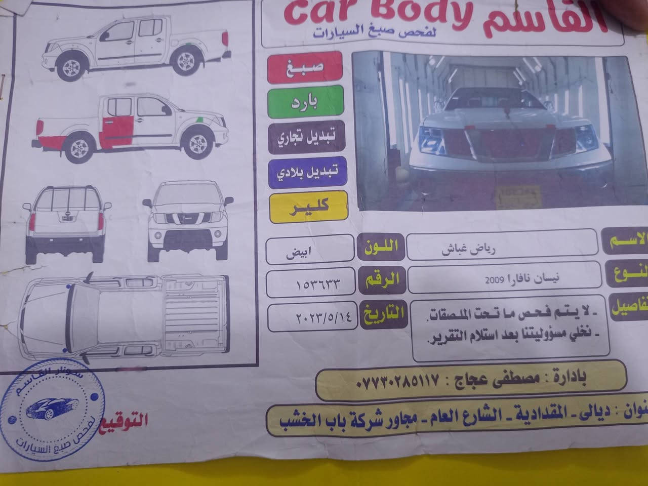 السلام عليكم سيارة نيڤارا السعر 95 ورقة موديل 2009 محرك بطه 2500 محوره منضومه غاز وبانزين رقمها سليمانيه سياره وكاله صاحبها الشرعي عربي سكنت ديالى مكان السيارة بغداد الجديدة رقم الهاتف ***********
