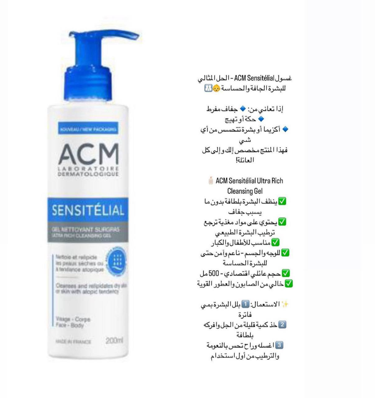 ACM SENSITELIAL • جل منظف ٢٠٠مل • بشرة جافة وحساسة