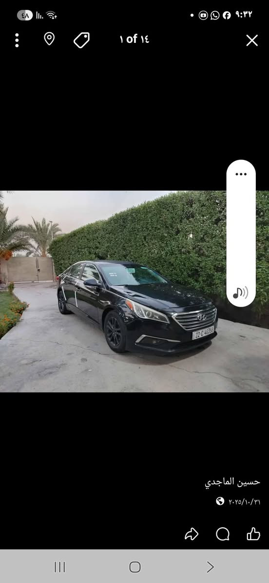 السلام عليكم سوناتا موديل 2015 مكان بغداد المدينه الصدر سيارة نضيفه كلشي شغال كهربائيات تبريد شغال سيارة بيه خمس قطع صبغ بس اني ابيع حزام سيارة بيه تنقيص كلش قليل عيني سعر ١١٥ بيه مجال هذه رقمي ***********