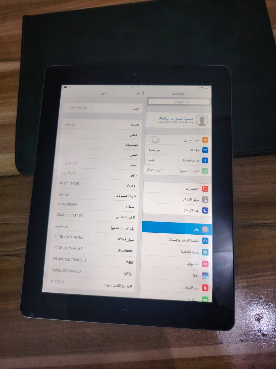 ايباد ميني 4 يدعم الشريحه للدراسه والالعاب الذاكره 64 ببجي 60فريم سعره 160وبيه مجال بسيط مكاني حصوه بابل رقمي *********** متوفر واتساب