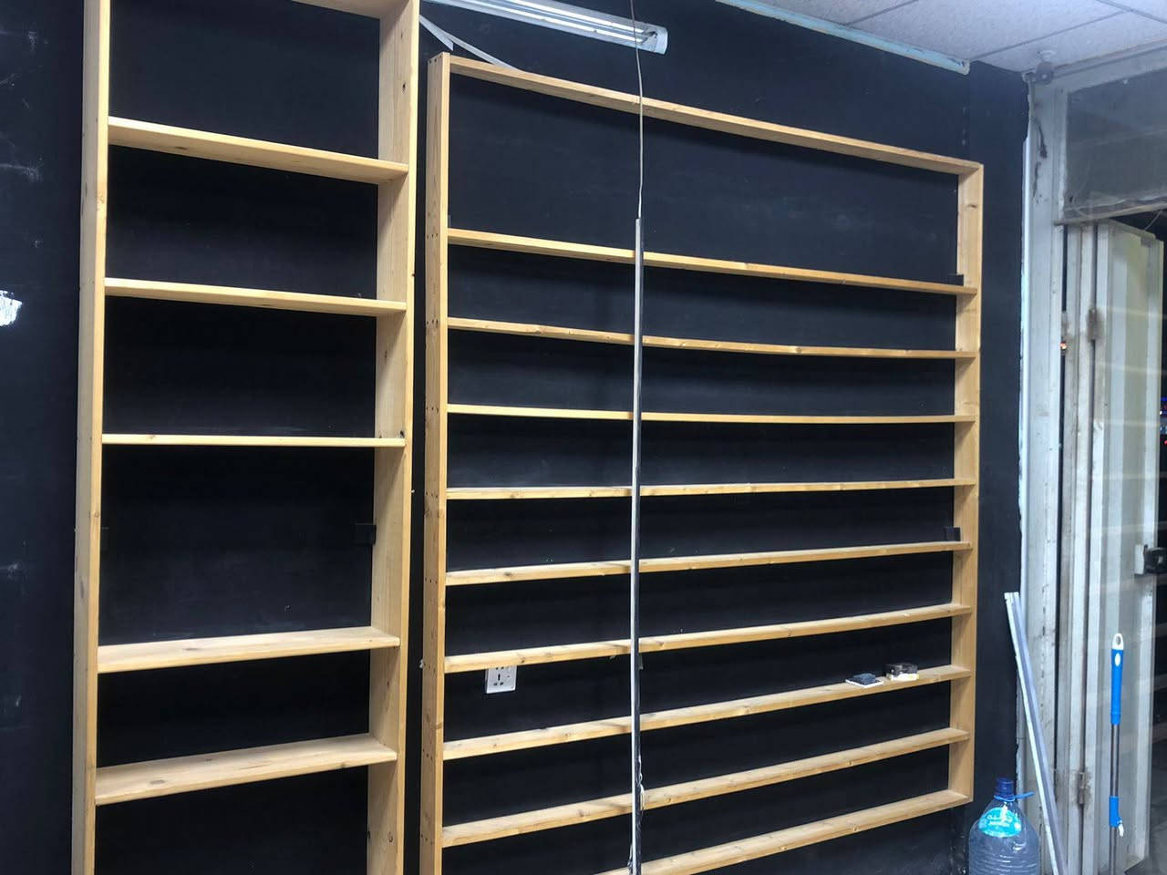 ١٣ رف خشبي • فاترينة زجاجية • ميز ١٩٠سم
