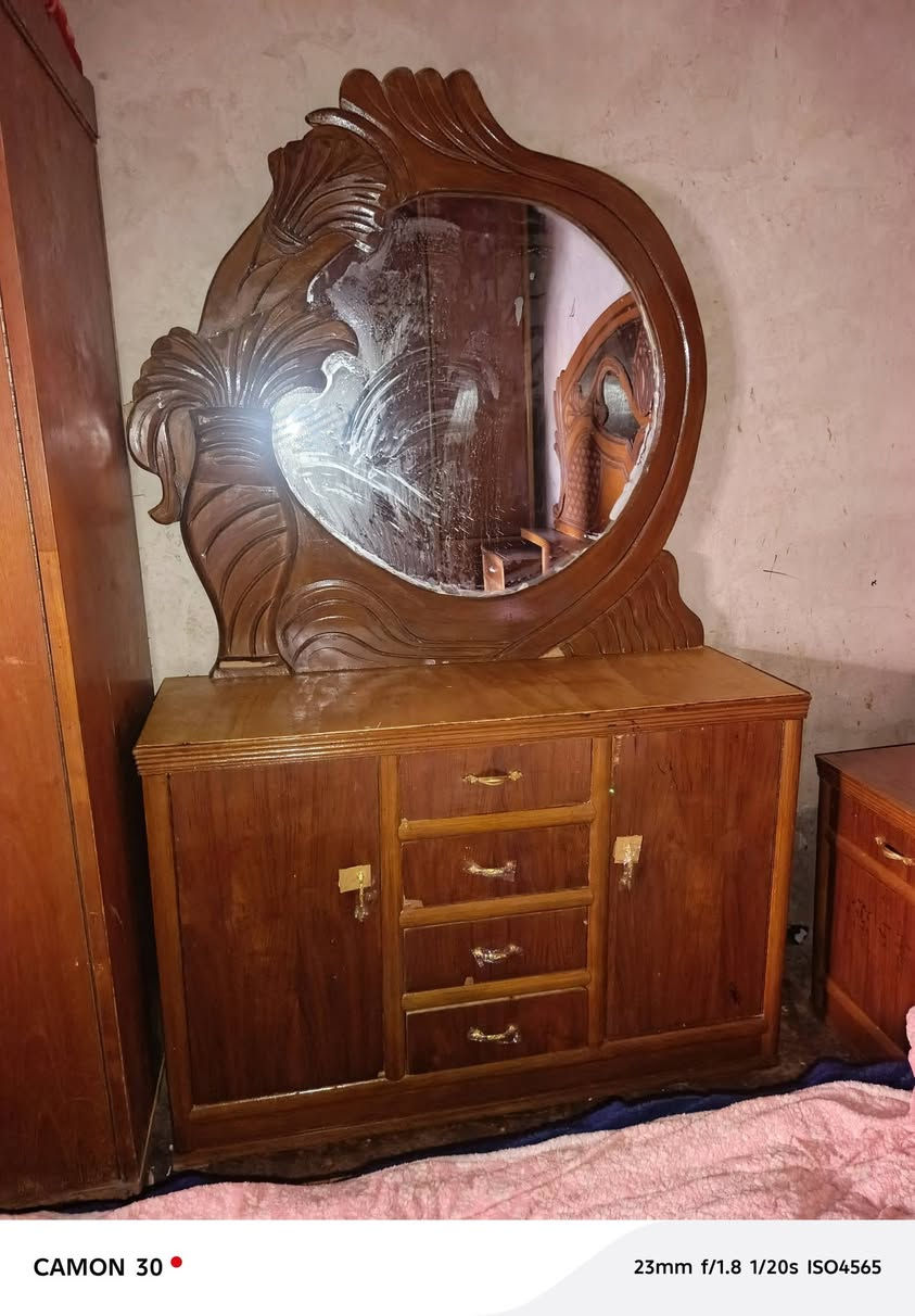 طقم نوم كلاسيكي • سرير خشبي مزخرف • تسريحة مراية