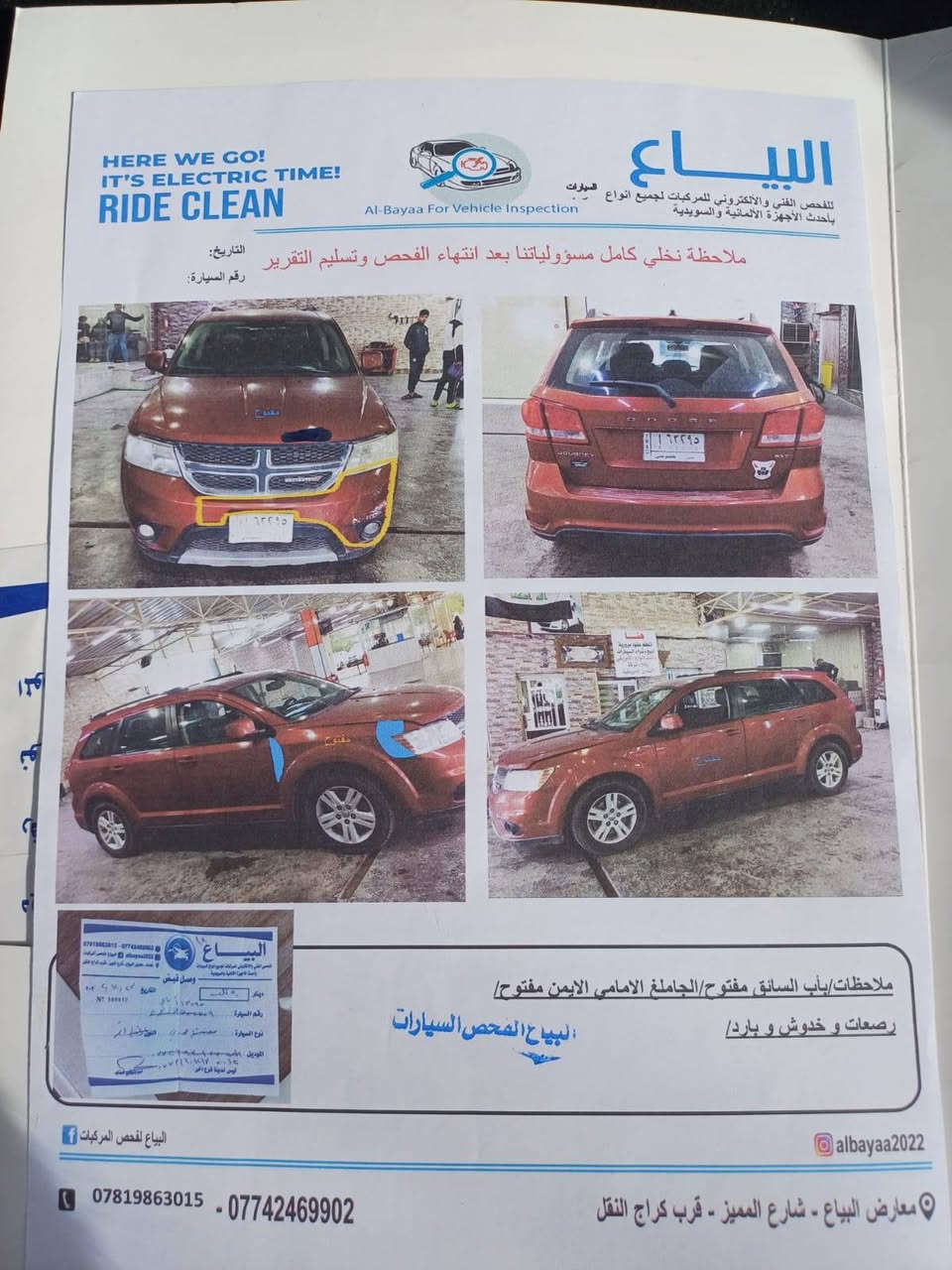 دودج جورني موديل 2012 ماكينه 2400 سبعه راكب رقم بابل انكليزي سنويه وهزه جديده 2026 اربعه سلندر ثلاث قطع تبريد تحكم ستيرن ثلاث بصمات بدون قطره صبغ صور الحادث والسونار موجوده السعر ١٢٠ وبيه مجال الاستفسار الاتصال عل رقم ***********