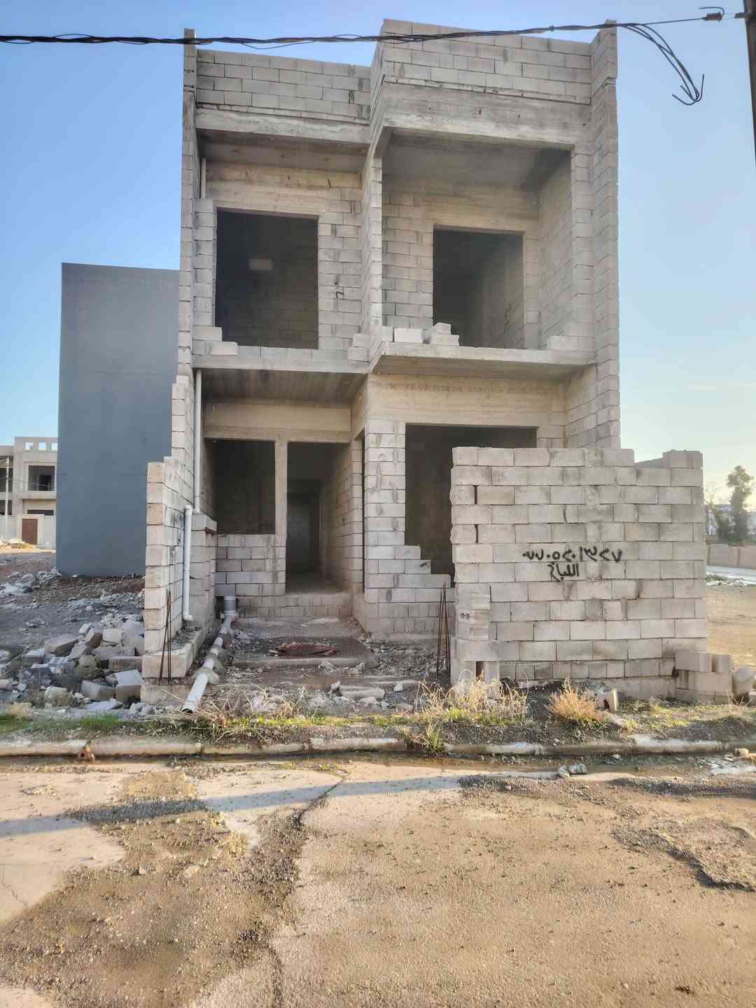 حصرياً هيكل للبيع – بيع مستعجل جداً 📍 العنوان: حي التعليم / مجمع النور 📐 المساحة: 120م 🏠 التفاصيل: دار طابقين الطابق الأول: كراج – استقبال – مطبخ – هول – مشتملات – غرفة نوم الطابق الثاني: ثلاث غرف نوم 🚧 المجاري: مرحلة أولى مشتغلة 🚧 البيتونة: غير مصبوبة 📞 اتصال أو واتساب: *********** ***********