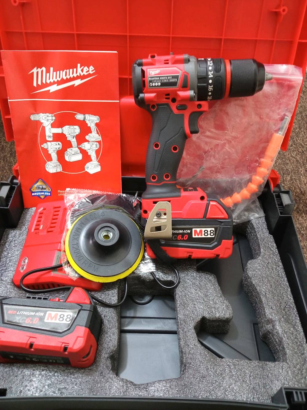 عدة دريل كهربائي من ماركة ميلووكي، موديل M88 بقوة 88V بتقنية اللاسلكي بدون فحمات. تحتوي العدة على بطاريتين بقدرة 6.0Ah وشاحن سريع، وحافظة بلاستيك متينة للحفظ والنقل. مثالية للأعمال المنزلية والمشاريع الاحترافية. العدة جديدة ولم تُستخدم مطلقاً.