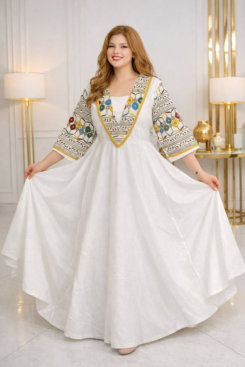 دشداشه نسائي • تطريز رمضاني • مقاسات 2XL-5XL