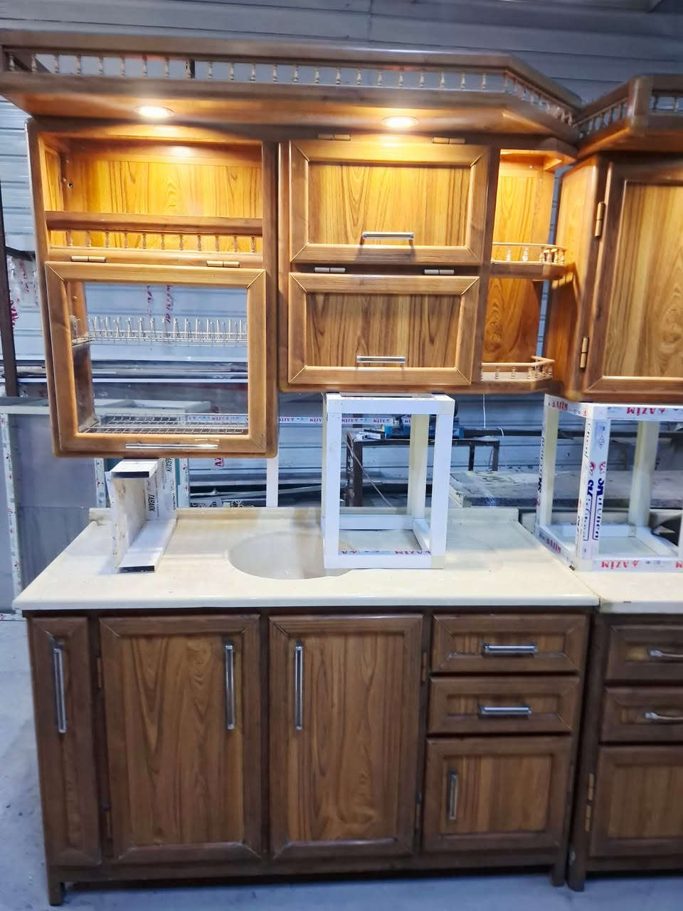 كاونترات خشب تركي • مرمر صناعي • ضمان ٥ سنوات