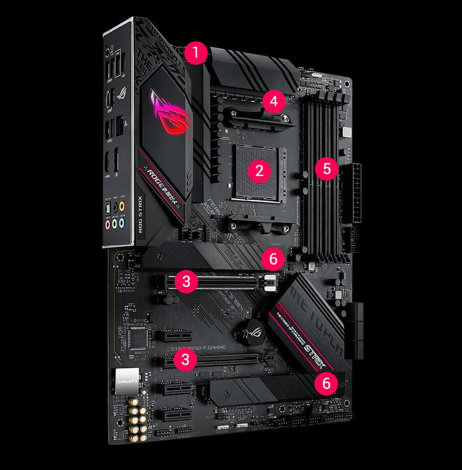 لوحة الأم ASUS ROG Strix B550-F Gaming هي لوحة أم متطورة بتنسيق ATX مصممة لمعالجات AMD Ryzen (سلسلة 3000/4000G/5000) بمقبس AM4. تتميز بدعم PCIe 4.0، مراحل طاقة (12+2) لأداء مستقر، دعم ذاكرة DDR4 عالية السرعة ***********5