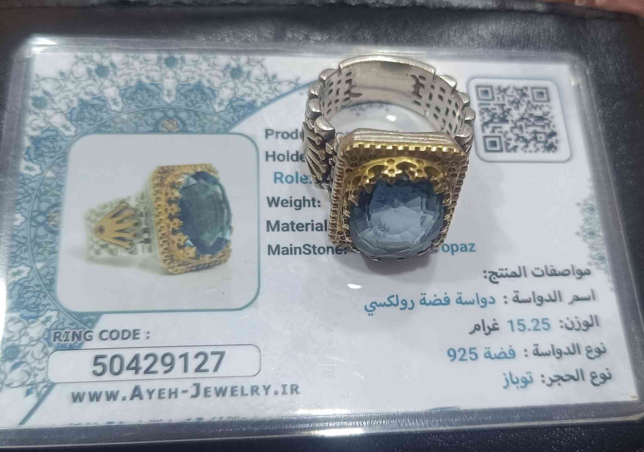 خاتم فضة • توباز أزرق • قياس ٢٢/٢١