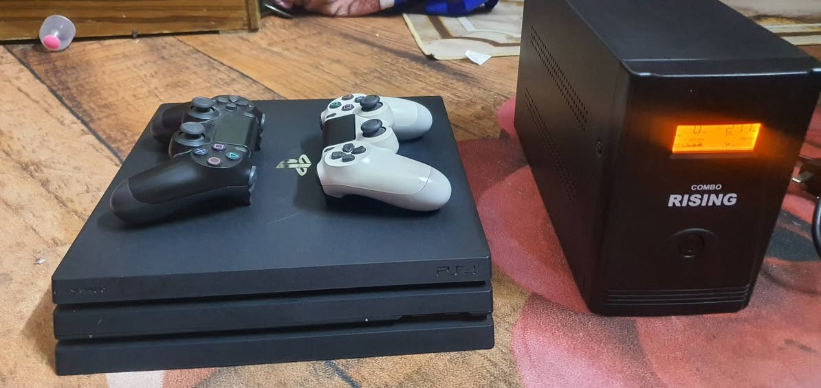 السلام عليكم للبيع PS4 pro مهكر نضام 11.00 مستقر وراقي ذاكرة 1 تيرا نضيف بشكل ومداخل تصليح وياه هارد خارجي توشيبا 512G UBS 3000 ريزن اونلاين وشاشة يطلع معلومات الشحن والحمل ويتحول صامت وهواي اعدادات بيه 2 يدات اصلية وياه عنواني بغداد واكو توصيل داخل بغداد فقط باقي تفاصيل خاص واكو وتساب ***********