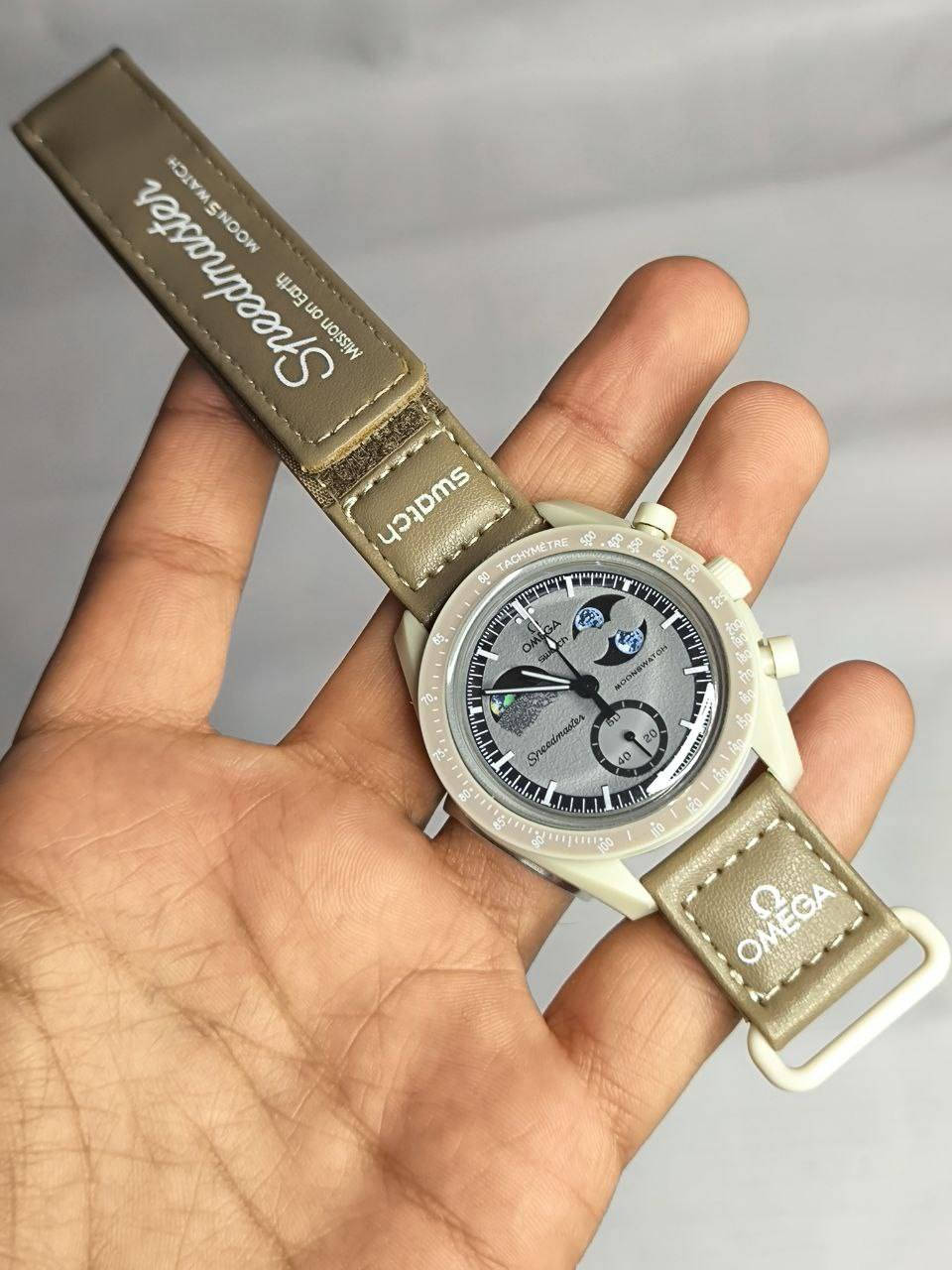 ساعة من ماركة اومكا Omega x Swatch MoonSwatch وارد اوربي تحفة فنية تصميم مستوحى من سطح القمر والأرض مكينة كوارتز ناعمة ستوبوج (جميع السناتر شغاله) المينا رمادية محببة تعكس شكل التضاريس القمرية فول لامينوس ارقام واميال مؤشر مراحل الأرض شغال يظهر الأرض بألوان خاصة والمحيطات تتوهج تحت ضوء UV مؤشر مراحل القمر شغال هيكل من مادة Bioceramic (خليط بين السيراميك والبلاستيك الحيوي) سير قماش VELCRO مختم زجاج معدني مقبب ضد الخدش مقاومة ماء وغبار ⚠️ملاحظة متوفر قطعة واحدة فقط السعر :-35 الف ع اول تم للحجز والاستفسار يرجى مراسلة الصفحه **إذا كنت صاحب هذا الإعلان وتريد حذفه لأي سبب، رجاءا أرسل رسالة إلى الدعم الفني**