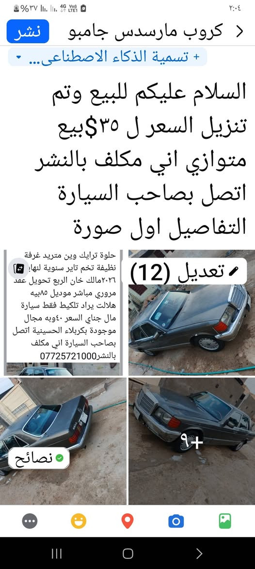 السلام عليكم للبيع تفاصيل داخل المنشور **إذا كنت صاحب هذا الإعلان وتريد حذفه لأي سبب، رجاءا أرسل رسالة إلى الدعم الفني**