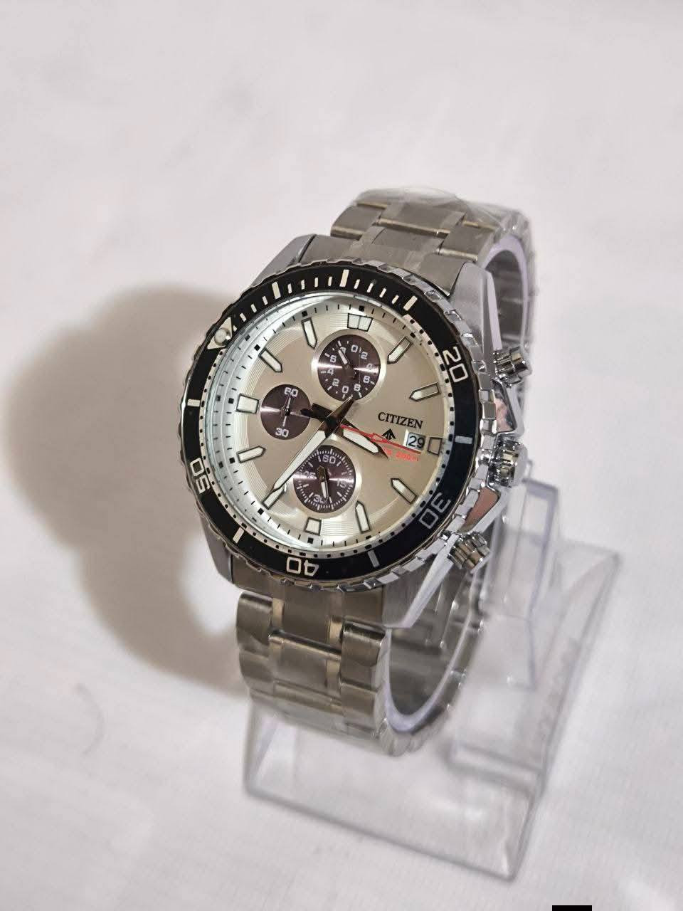 ساعة من ماركة ستزن Stizen ايكو درايف وارد اوربي DHL تحفة فنية مكينة كوارتز (جميع السناتر شغالة) مينة ابيض فول لامينوس ارقام واميال مزوده بمنفذ تاريخ نظام الشحن عبر الضوء رنك دوار سير ستانلس ستيل جودة عاليه ساعة وزن ثقيل جدا السعر :-35 الف ع اول تم للحجز والاستفسار مراسلة ***********