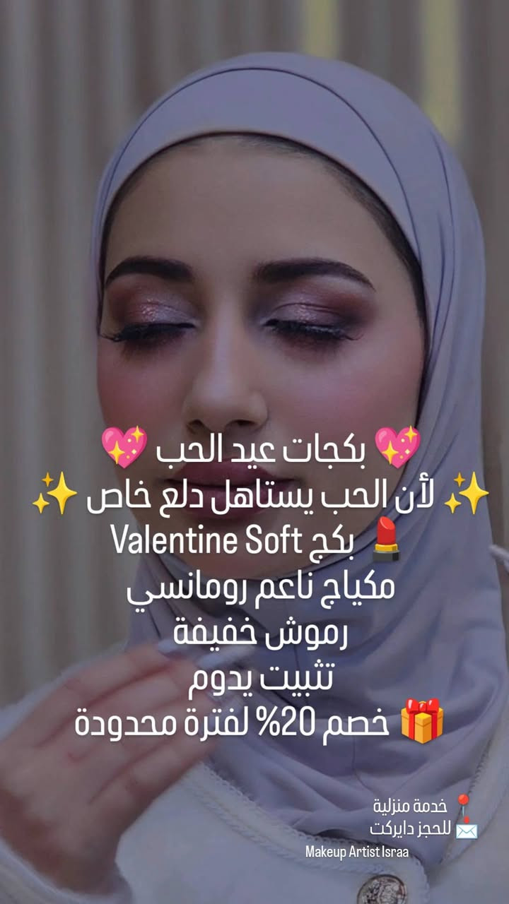 هلاو بنات 💖 بكجات عيد الحب 💖 🎉 عرض خاص لفترة محدودة 🎉 💖 بكجات عيد الحب 💖 ✨ لأن الحب يستاهل دلع خاص ✨ 💄 بكج Valentine Soft مكياج ناعم رومانسي رموش خفيفة تثبيت يدوم 🎁 خصم 20% لفترة محدودة ##ميكب #ميكب_أرتست #السماوة #ميكب_العراق #ميكب_بغداد #عراقيات #بنات_العراق #جمال_عراقي **إذا كنت صاحب هذا الإعلان وتريد حذفه لأي سبب، رجاءا أرسل رسالة إلى الدعم الفني**