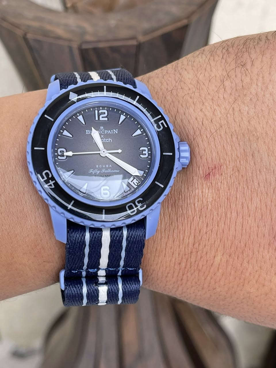 سلام عليكم ساعة ماركة سواتش صنع سويسري اصل تصميم تتميز بلون ازرق مدرج من محيط الأطلسي مكينة وتماتيك حطياطي طاقة 90 ساعة كشف طوق دوار سيراميك عرض منذف تاريخ مقاومة الماء 90 متر سير كتان من اجود نواع قماش بلادي مختم سواتش ساعة لم تستخدم رتيل ساعة في مواقع 300 يورو 💶 عنواني بغداد الدورة يوجد توصيل 🚚 بغداد ولكل العراق 🇮🇶 *********** تفاصيل اكثر خاص او وتساب