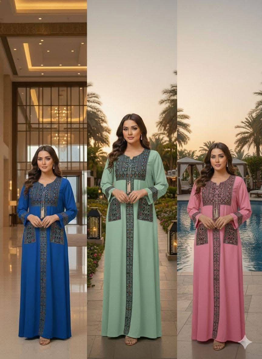 دشداشة كشمير • تطريز ستراس • مقاسات L XL 2XL