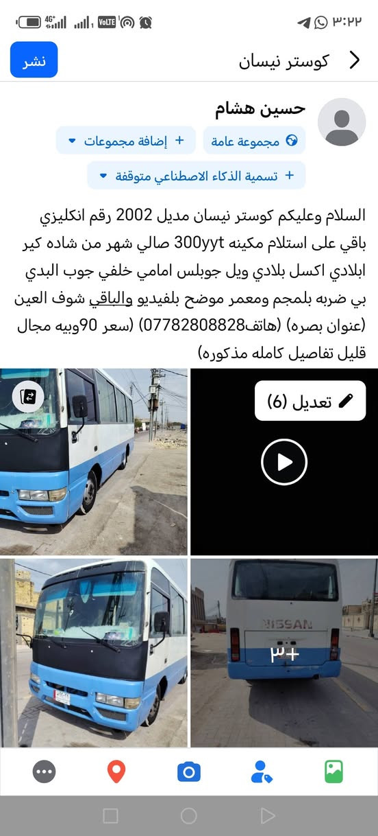 السلام وعليكم كوستر نيسان مديل 2002 رقم انكليزي باقي على استلام مكينه 300yyt صالي شهر من شاده كير ابلادي اكسل بلادي ويل جوبلس امامي خلفي جوب البدي بي ضربه بلبجم ومعمر موضح بلفيديو والباقي شوف العين (عنوان بصره) (هاتف***********) (سعر 90وبيه مجال قليل) (تفاصيل كامله مذكوره)