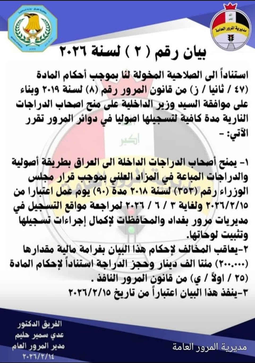 بابل المدحتيه • تسجيل سيارات ودراجات • شارع 60 مقابل المديرية