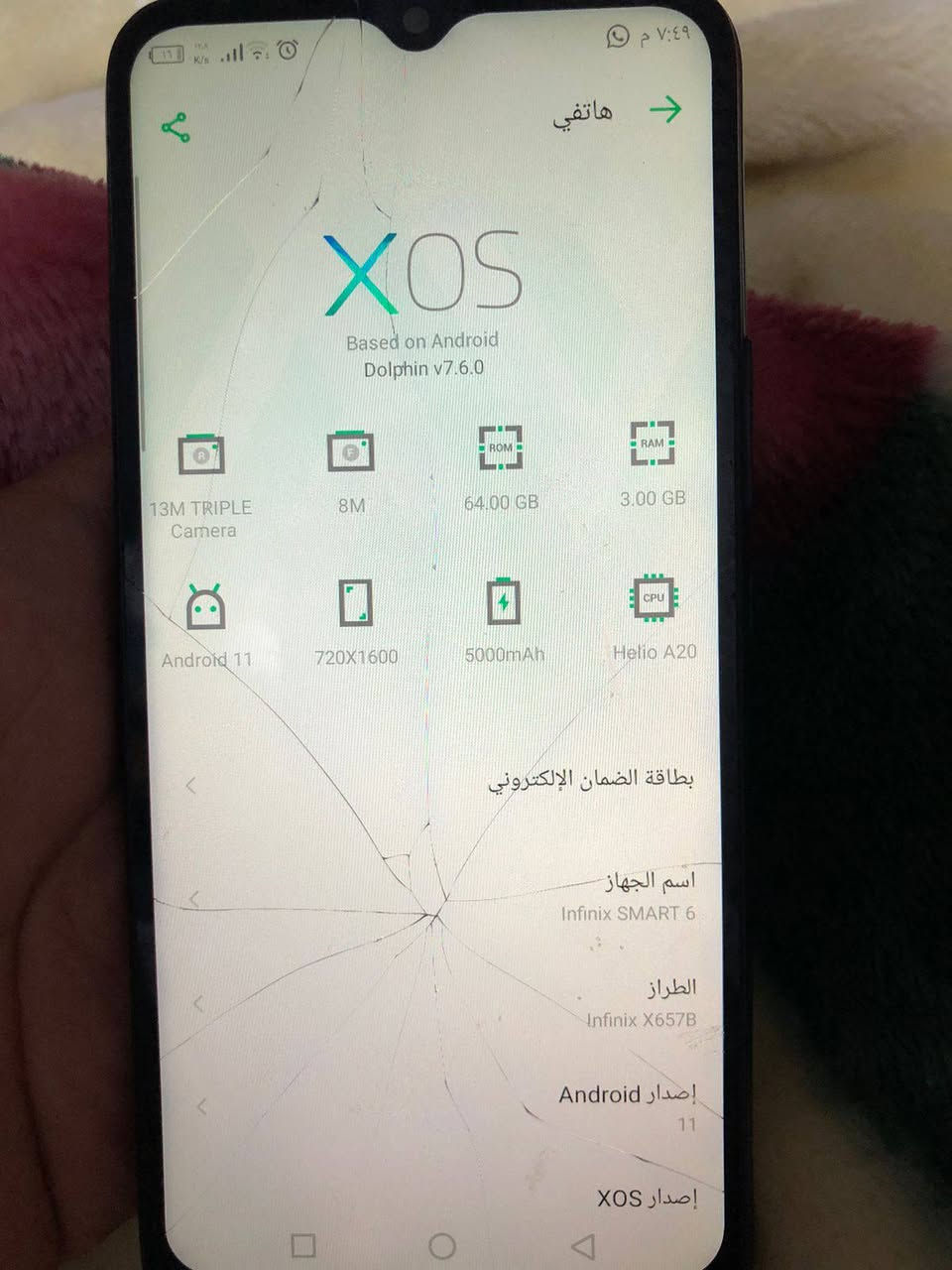 سلام عليكم انفنكس سمارت 6 ذاكره 64 بلادي بصمه اصبع بصمه وجه كله شغال بس هاي فطور بشاشه ماماثره على لمس ابد و فلات مال صوت اسوي عليها تصليحه سعرها 65 بي مجال حك جيه *********** مكاني شعب