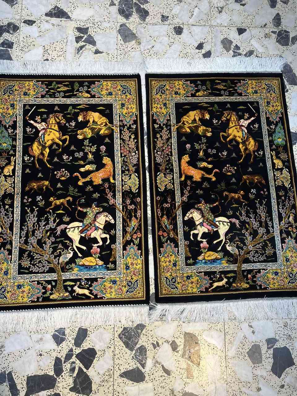 زوج زوالي حرير بالكامل ايراني شغل قم مصور رحلة الصياد نظافه 100/100 القياس 95 ب 60 سنتم سعر الزوج 175 **إذا كنت صاحب هذا الإعلان وتريد حذفه لأي سبب، رجاءا أرسل رسالة إلى الدعم الفني**
