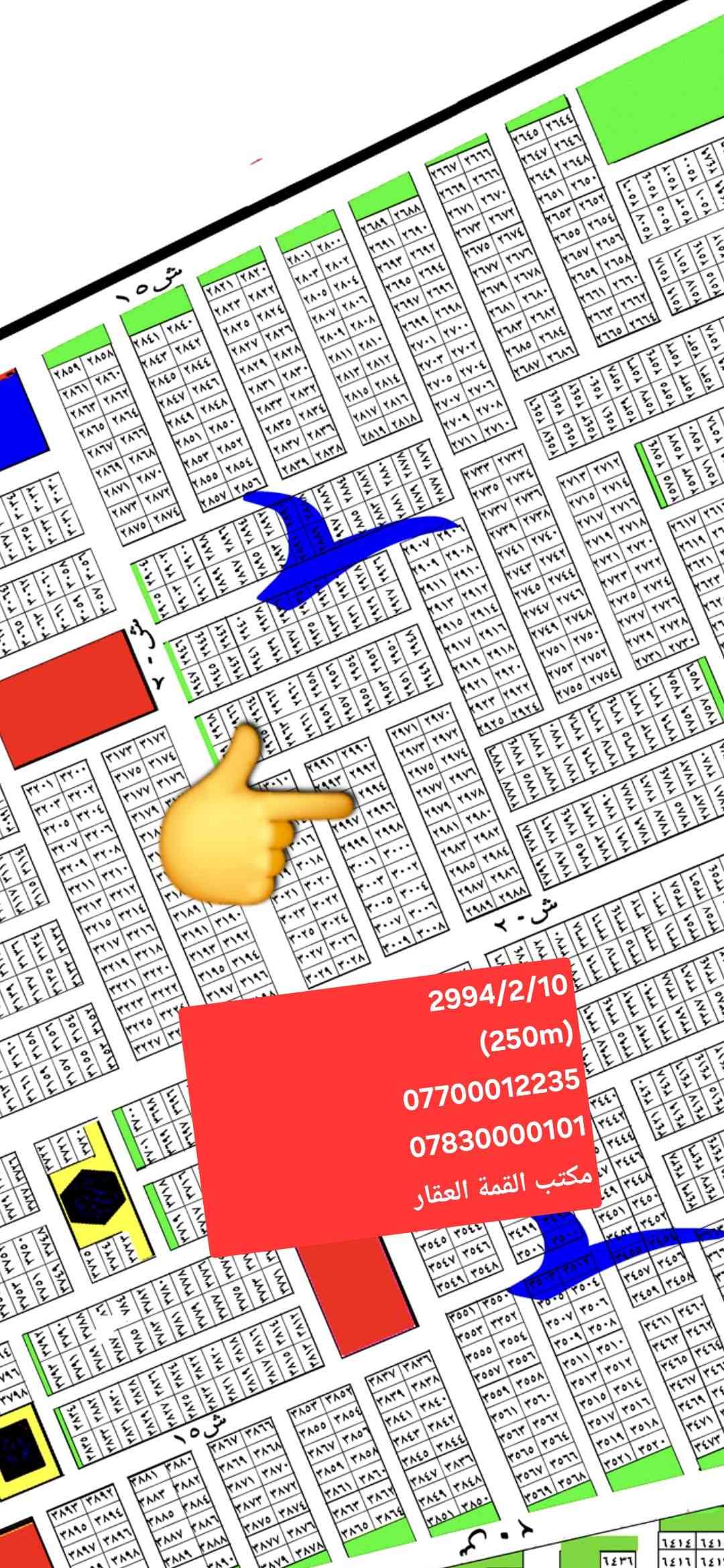 (مكتب القمةالعقار)#تابعني يوصلك كلشي جديد يوجد قطعة أرض طابو ملك صرف للبيع موقع مميز وقريب مفروزه وجاهزة وسعر مناسب في مربع ال (2000) (دخول مباشر من شارع 40 ) بيه بناء منطقة حلوه (الواجهة 12.5// النزال 20) 🔴🔴🔴🔴🔴🔴 رقم العقار (2994) مقاطعة (2/10) المساحة (250m)تريد نص هم ترهم السعر (170) مع مجال 🔴🔴🔴🔴🔴🔴 للأستفسار تفضل خاص او اتصل *********** *********** علاء الفهداوي