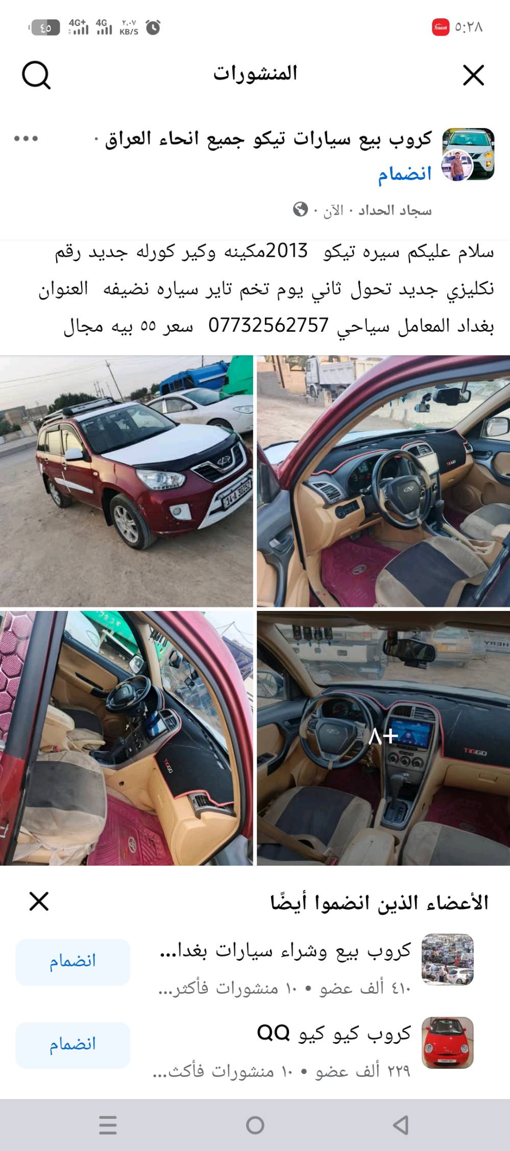 سيارة تيكو موديل 2013 بحالة جيدة متوفرة للبيع. محرك وكير كورلا جديد، تم تبديله. تمت صيانة السيارة حديثاً وتشمل تخم تاير. السيارة متوفرة في بغداد، المعامل السياحي. للاستفسار يرجى التواصل على الرقم: ***********. السعر: 55 مجال