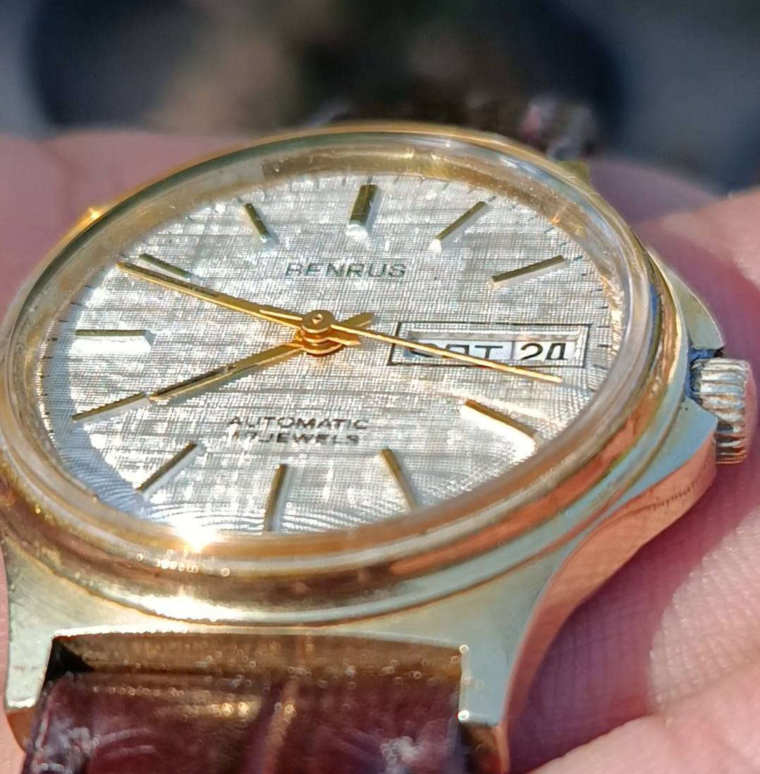ساعة بينروس اوتوماتيك انتاج السبعينات الولايات المتحدة الأميركية - المانيا قطر ٣٨ ملم مينا كاروهات صدفي لوك دي ديت نظافة جيدة جدا السعر ١٨٠ الف **إذا كنت صاحب هذا الإعلان وتريد حذفه لأي سبب، رجاءا أرسل رسالة إلى الدعم الفني**