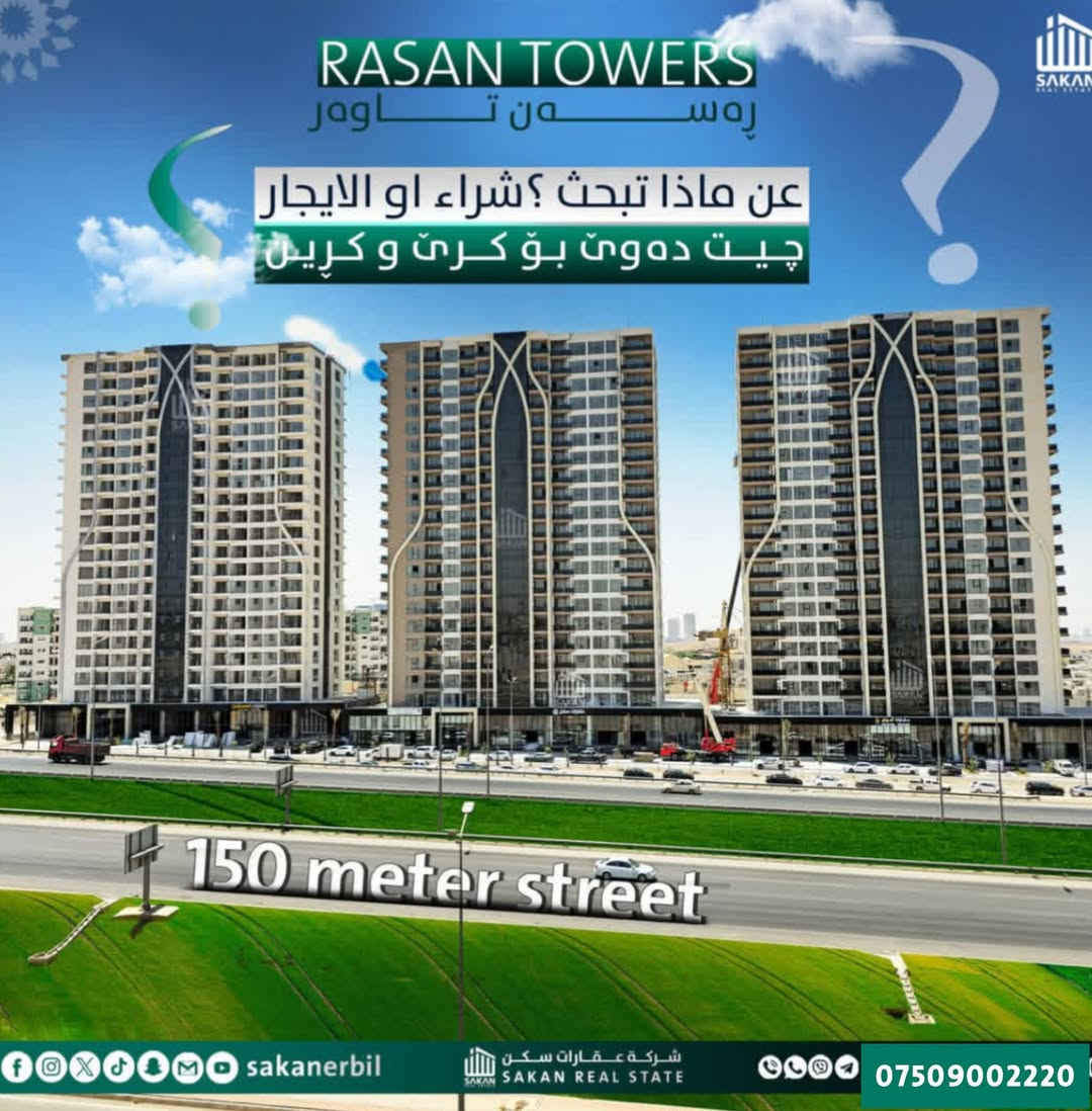 🔥 شقق للبيع – فرصة استثمارية مميزة في رسن تاورز 🏢 إذا كنت تبحث عن سكن راقٍ أو استثمار مضمون بعائد ممتاز، الآن فرصتك الذهبية في واحد من أرقى المشاريع السكنية في أربيل – شارع 150 متري ✨ 📐 المساحات المتوفرة: 🔹 (1+1)غرفة وصالة–مثالية للاستثمار أو السكن الفردي 🔹 (1+2)غرفتين وصالة–مناسبة للعوائل الصغيرة 🔹 (1+3) ثلاث غرف وصالة – راحة ومساحة أكبر للعائلة 🔹(1+3) ثلاث غرف وصالة+ مطبخ معزول[190]متر لماذا تختار رسن تاورز؟ ✔️ ✅ تصميم عصري وتشطيبات فاخرة بمعايير عالية الجودة ✅ موقع استراتيجي قريب من المولات، المدارس، المستشفيات وجميع الخدمات ✅ أمن وحراسة وكاميرات مراقبة 24 ساعة 🛡 ✅ كهرباء ومياه متوفرة على مدار الساعة 💡🚿 ✅ نظام إخماد وإنذار حرائق متكامل 🧯 ✅ نظام غاز مركزي ذكي 🎛 ✅ إدارة وخدمات منظمة داخل المجمع 💰 فرصة استثمارية ممتازة – طلب عالي على الشقق في المنطقة 📈 إمكانية تحقيق دخل شهري ثابت من الإيجار 🤝 إمكانية الدفع النقدي أو الاتفاق على آلية مريحة 📞 للحجز والاستفسار (Call + WhatsApp + Viber) wa.me/9647509002220 *********** *********** #شركة_عقارات_سكن #رسن_تاورز #شقق_للبيع_أربيل #فرصة_استثمارية