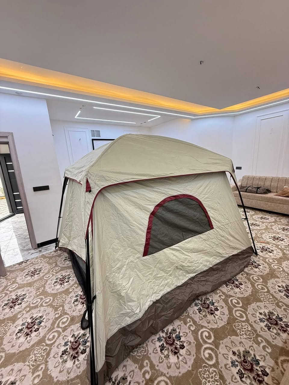 خيمه عائلیة كبیرة بتصمیم كلش حلو تنشد بسياره قیاس طول 3 متر و10 و عرض2 متر و10 سانتيم وارتفاع 2 متر یتكون من غرفتین وتكدر تفصل بینها یصیر غرفة كبیرة ویا كاعیة و سقف طبقتین وبیها شبابیك كل شباك بیها ناموسیة السعر 110 الف متوفر توصیل لکل محافظات ٥ الف *********** بی واتساب