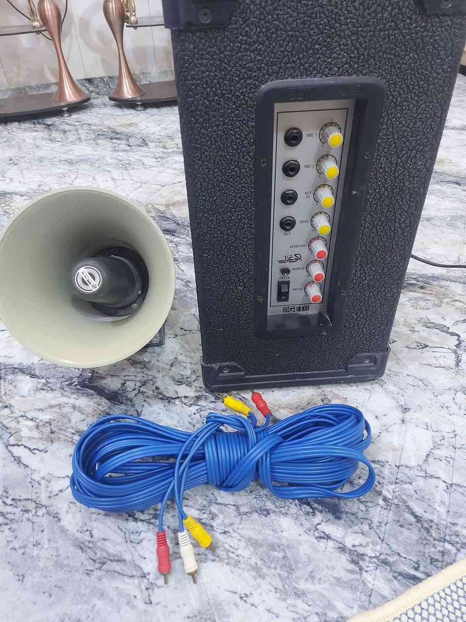 جهاز مكبر صوت شحن مع سبيكر مستعمل مع كيبل فيشه عشرة متر للبيع **إذا كنت صاحب هذا الإعلان وتريد حذفه لأي سبب، رجاءا أرسل رسالة إلى الدعم الفني**