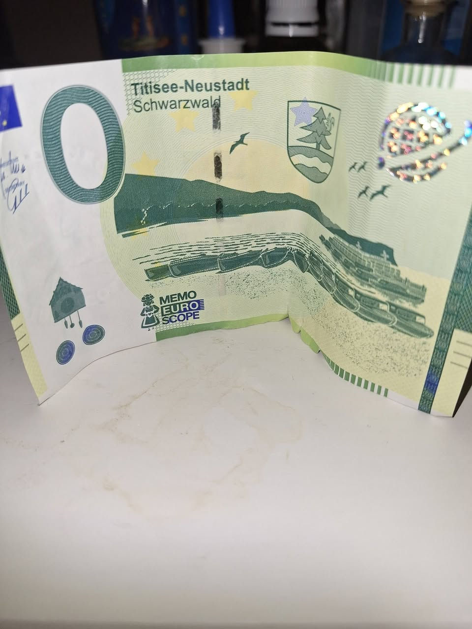 صفر يورو . صادره من البنك المركزي الالماني. ورقه نقديه نادره . بكل المواصفات والقياسات ونفس ورقه ال 100 الخضراء. ولكن صفر . للهواه والمتحف ولا احد بالعالم يعرف السبب الحقيقي لاصدارها . البنك باعها ب عشره يورو .. ل الكولكترز امثالنا .. ابيعها بخمسين يورو . واعرف انها تساوي اكثر .. **إذا كنت صاحب هذا الإعلان وتريد حذفه لأي سبب، رجاءا أرسل رسالة إلى الدعم الفني**