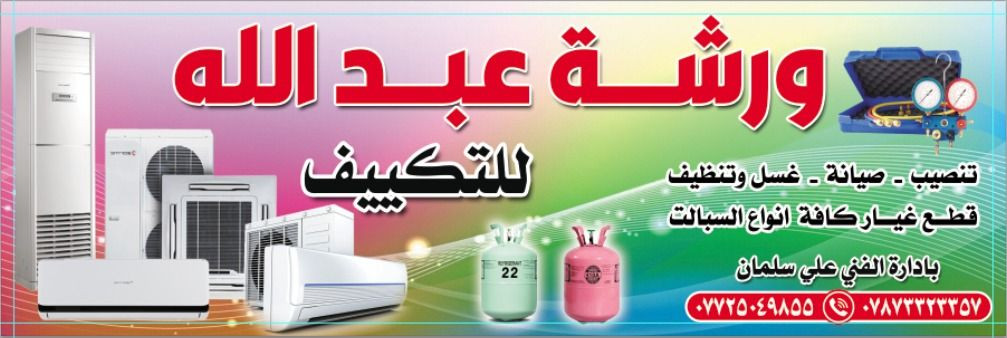 (بـسم الله الرحمن الرحيم ) (وإن ليَس للإنسن الإ ماسعئ وأن سعيهُ سوفُ يُرئ ثُم يُجزاهُ الجزاءَ الأوفَئ ) بـــسم الله نبــدأ بأفتتـاح ورشــة عبدالله للتــكييف والتبريد (تنـصيب _ صيــانه _ غســل وتنــضيف ) و قــطع غيــار كـافة أنـواع السبـالت بأنســب الاسعـار بأدارة الفــني : علــي سلـمان *********** واتـساب *********** واتـساب العـنوان/ تكـريت - بدايـة شارع الأربعــين من جهـة مجلـس محافظة صلاح الديـن - الفرع الاول - مقـابل مسـتوصف أبـن سيـنا الطـبي .