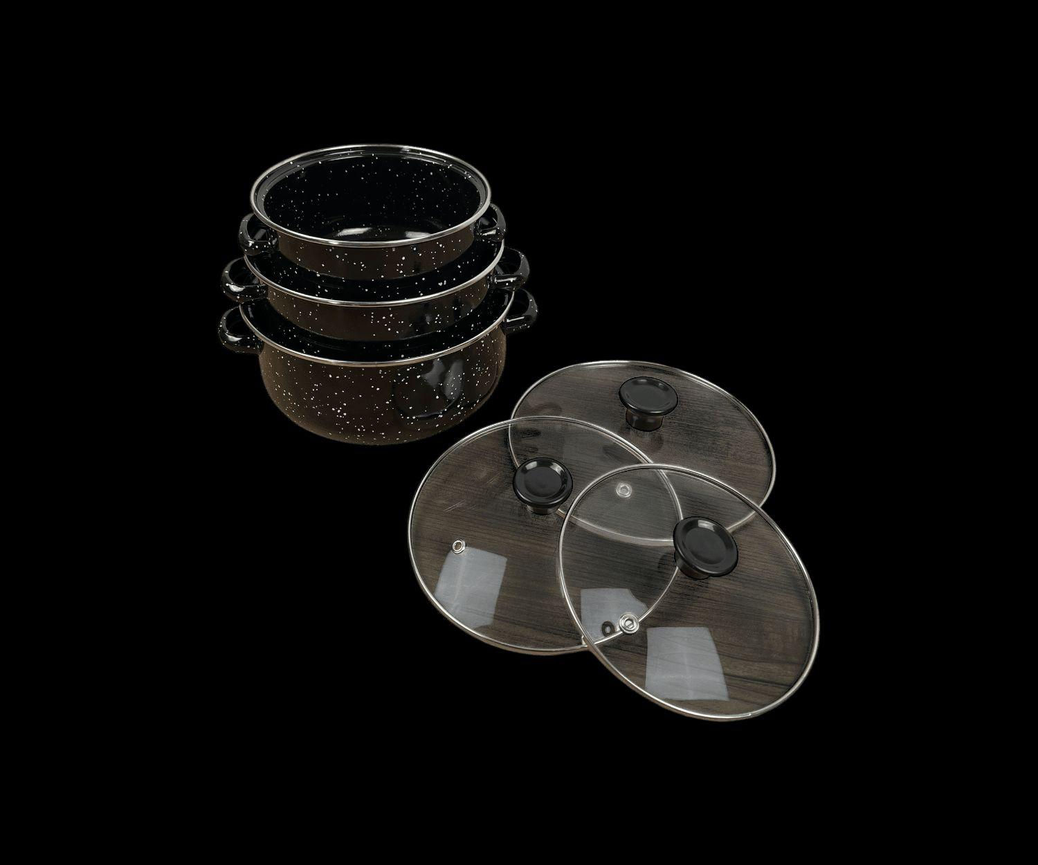 سيت قدور طبخ إيناميل ثلاثي مع أغطية زجاج الاستخدامات طهي الشوربات، المرق، الرز، والمعكرونة. تحضير اليخنات والأطعمة اليومية بكميات مختلفة. مناسب للاستخدام اليومي في المطبخ المنزلي. مثالي للعائلات الصغيرة والمتوسطة. المميزات سيت مكوّن من 3 قدور بأحجام مختلفة لتغطية جميع احتياجات الطبخ. مصنوع من معدن مطلي بطبقة إيناميل مقاومة للحرارة وسهلة التنظيف. أغطية زجاجية شفافة مع فتحة بخار لمتابعة الطهي دون رفع الغطاء. توزيع متوازن للحرارة يساعد على طهي متجانس. مقابض جانبية متينة لسهولة الحمل والاستخدام. تصميم منقّط أنيق باللون الأسود يناسب جميع المطابخ. المقاسات: - الكبير: قطر 20 سم – ارتفاع 9 سم - الوسط: قطر 18 سم – ارتفاع 8.5 سم - الصغير: قطر 16 سم – ارتفاع 8 سم قياس الكارتون: 20 × 20 × 17 سم محتويات الصندوق قدر كبير قطر 20 سم + غطاء زجاجي. قدر وسط قطر 18 سم + غطاء زجاجي. قدر صغير قطر 16 سم + غطاء زجاجي. الملاحظات مناسب لمعظم أنواع المواقد المنزلية. يُفضّل استخدام أدوات خشبية أو سيليكون للحفاظ على طبقة الإيناميل. لا يُنصح بتعريض القدر لصدمة حرارية مباشرة (من حرارة عالية إلى ماء بارد). يُغسل قبل الاستخدام الأول. أربيل, العراق **إذا كنت صاحب هذا الإعلان وتريد حذفه لأي سبب، رجاءا أرسل رسالة إلى الدعم الفني**