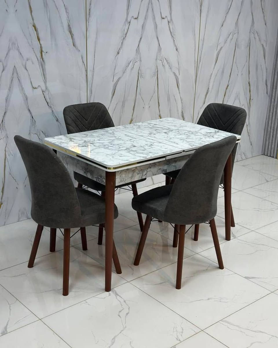 ميز طعام 6 كراسي • سطح مرمر ١٤٠×٨٠ سم • تركي درجة أولى