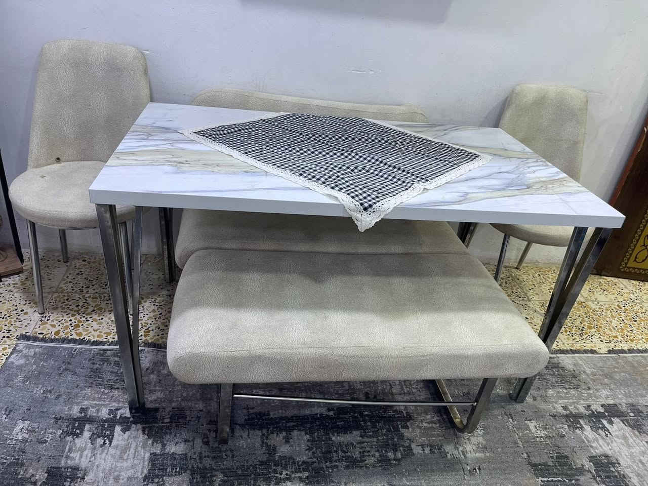 ميز كبير مع كراسي اثنين وقنفات اثنين ماخذته ٣٥٠ ورايده ١٥٠ **إذا كنت صاحب هذا الإعلان وتريد حذفه لأي سبب، رجاءا أرسل رسالة إلى الدعم الفني**