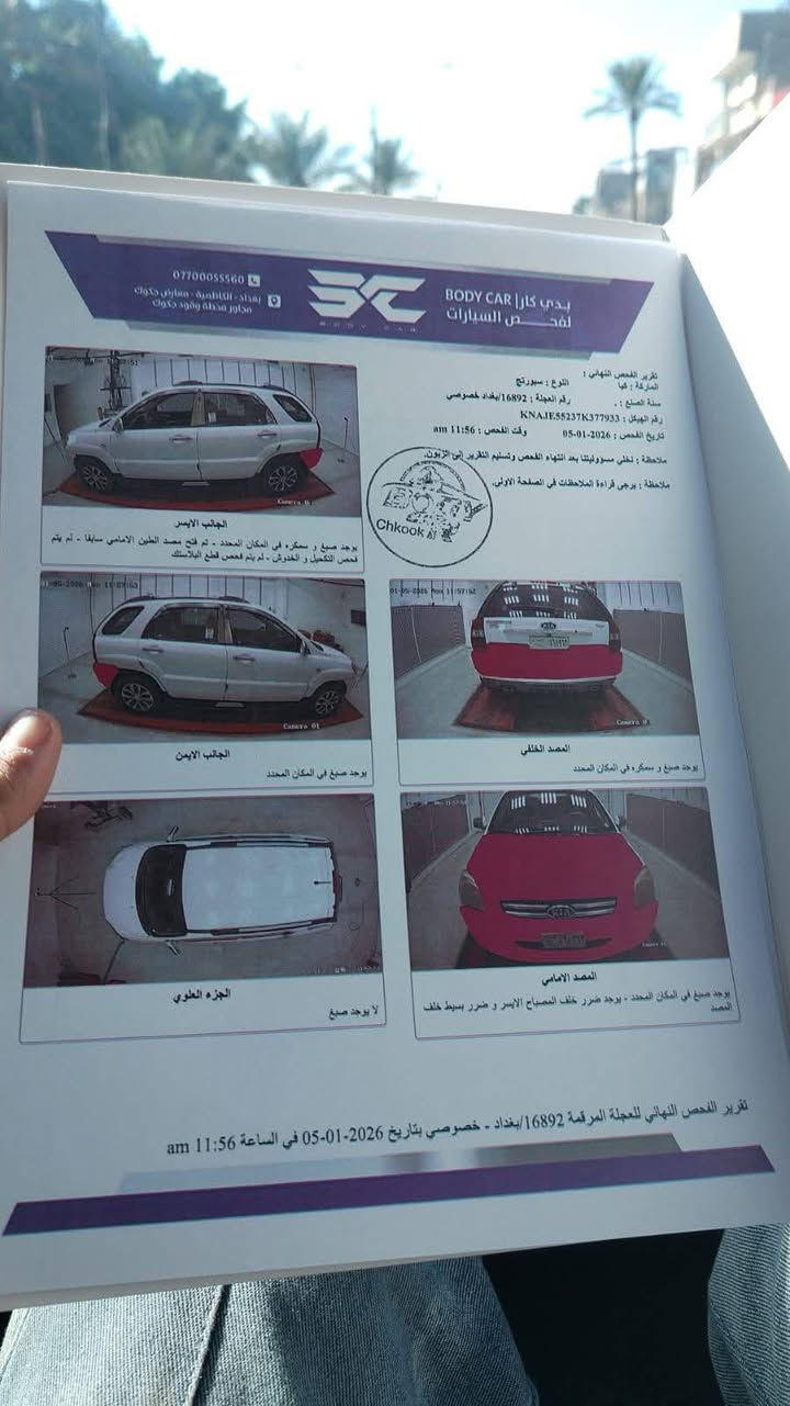 سلام عليكم كيه سبورتج مديل 2007سياره حلوه بعنه الكلمه غرفه جديده صدر جديد تبريد ثلج مكينه لا تبخير ولا تنقيص رقم نكليزي تايرات جديده شاشه جديده مري شفط مابيها حادث فقط البنيد صبغ وربع صابع جنطه صبغ وصور سونار مرفقه بل منشور سعر 97وبيها مجال مكان بغداد شعله ***********