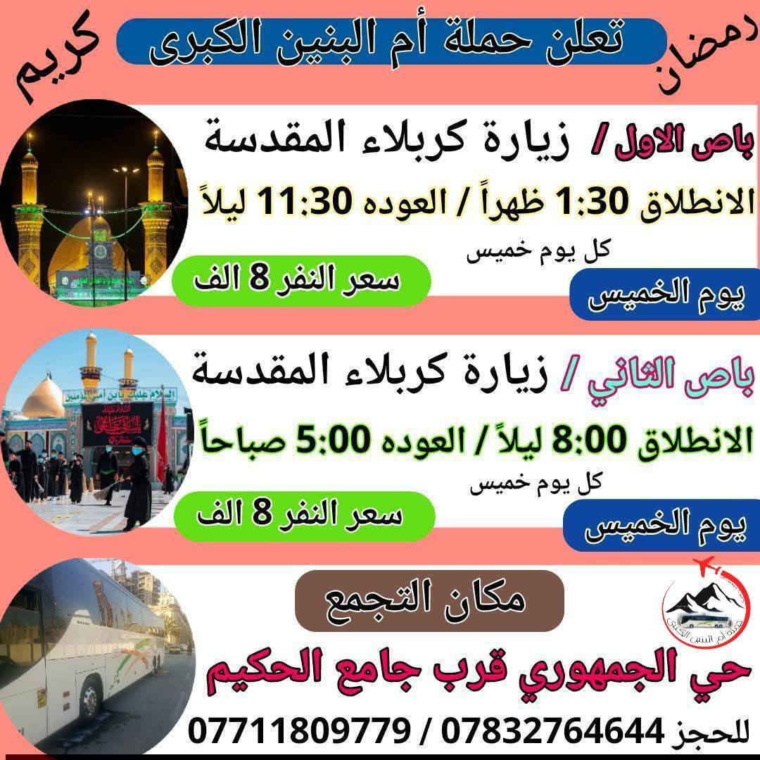 رحلات رمضانية • كربلاء • باصات مكيفه