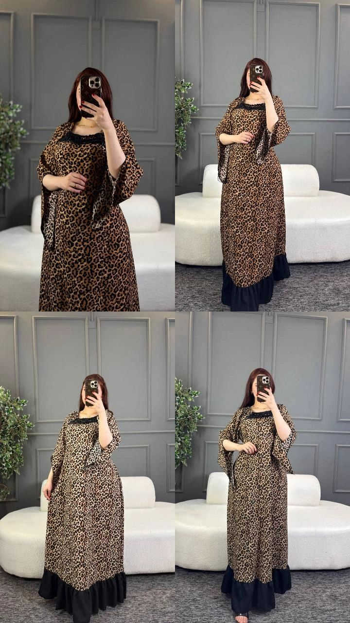 دشداشة جلد النمر • قماش فانيلا زبدة • فري سايز ٥٠-٨٠ كج