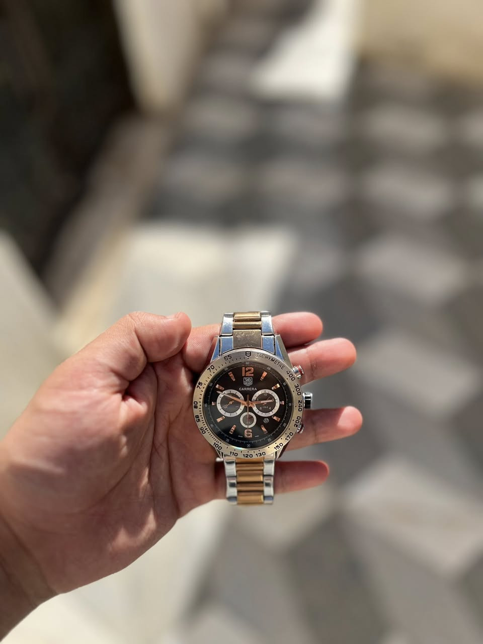 للبيع ساعة رجالية ماركة TAG Heuer Carrera 🔥 • تصميم يجمع بس الرسمي والسبورت فخم وأنيق • وزنها ثقيل ومتينة تدل على جودتها • حالتها نظيفة جداً مثل ما موضح بالصور استخدام قليل جداً **إذا كنت صاحب هذا الإعلان وتريد حذفه لأي سبب، رجاءا أرسل رسالة إلى الدعم الفني**