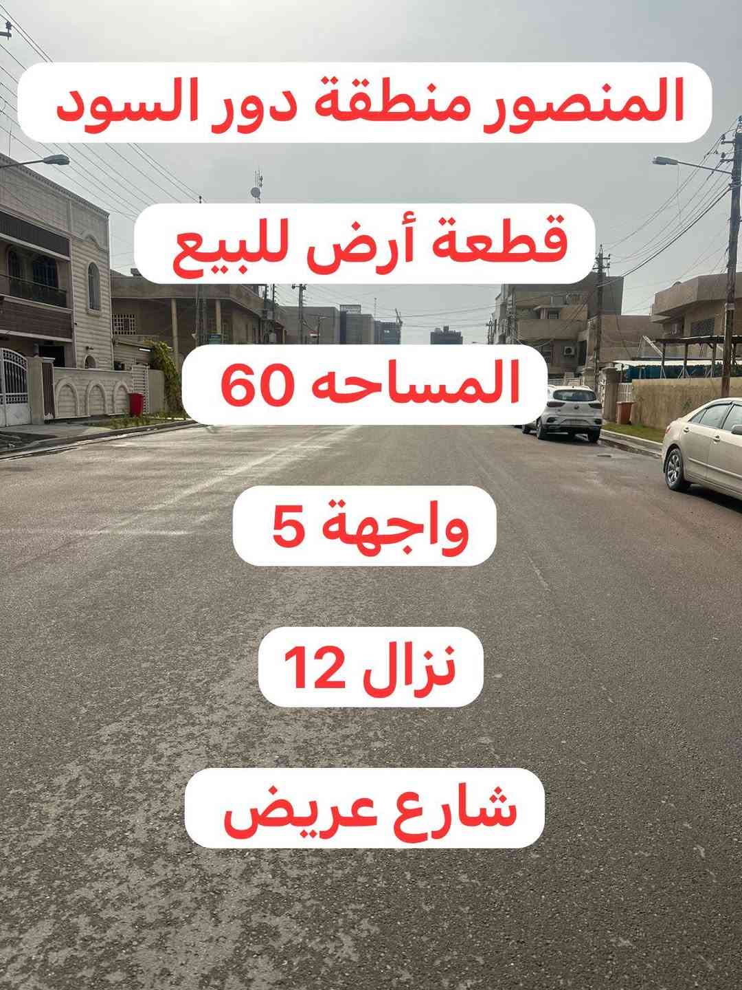 المنصور دور السود قطعة أرض للبيع المساحة 60 واجهة 5 نزال 12 شارع عريض استفسار مراجعة شركة سما العلياء للأستثمارات العقارية شارع بلدية المنصور قرب كاتب عدل مجاور مصرف استثماري الاتصال على ارقام تالية *********** ***********