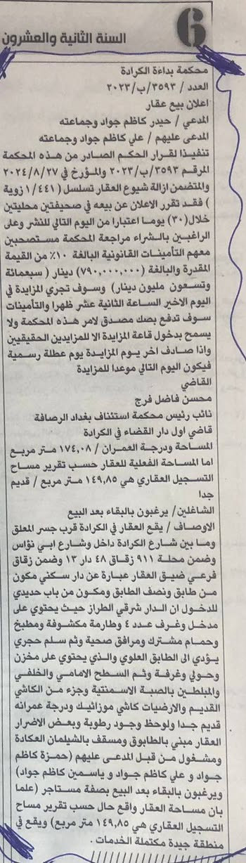 دار للبيع التفاصيل داخل الصورة للاستفسار على الرقم *********** بغداد, العراق
