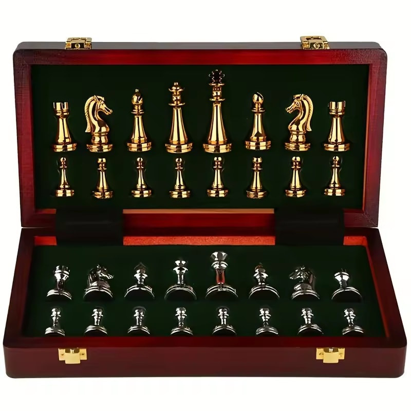 مجموعة شطرنج فاخرة، قطع شطرنج معدنية لامعة ولوح خشب الجوز، لعبة لوحية شطرنج للسفر، صندوق هدايا فاخر ..... 35 الف على اول تم **إذا كنت صاحب هذا الإعلان وتريد حذفه لأي سبب، رجاءا أرسل رسالة إلى الدعم الفني**