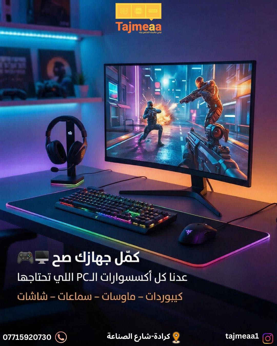 التجربة الصح تبدي من الأكسسوار الصح 🎧🖱️ عدنا كل اللي يحتاجه جهازك 👇 🔹 كيبوردات 🔹 ماوسات 🔹 سماعات 🔹 شاشات وأكسسوارات أصلية للألعاب، للشغل، وللدراسة كمّل جهازك مثل ما تحب 🔥 راسلنا وخلي تجهيزك علينا ✔️ عنوان : بغداد-كرادة-شارع الصناعة واتساب : *********** انستا : @tajmeaa1