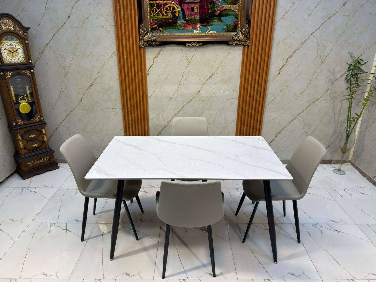 ميز طعام مرمر • ٤ كراسي جلد • تكريت الزهور