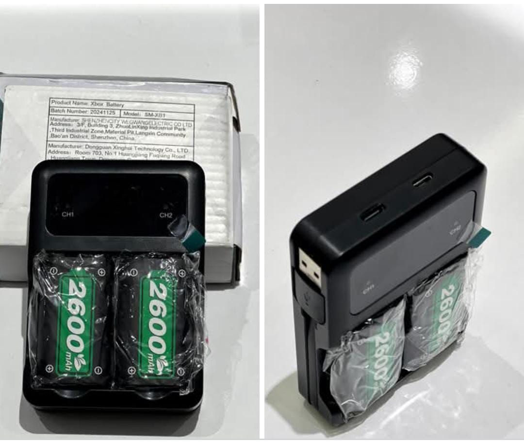 بطاريات وشاحن يدات Xbox جديدة وغير مستخدمة بطاريتين سعة 2600mAh لكل وحدة ويجي وياها شاحن مزدوج يشحن بطاريتين بنفس الوقت الشحن عن طريق USB تشتغل على يدات Xbox Series / One المحتويات: شاحن مزدوج + بطاريتين 2600mAh + كيبل USB السعر: 12 الف.... التوصيل لجميع المحافظات العراق 3الف... @إشارة **إذا كنت صاحب هذا الإعلان وتريد حذفه لأي سبب، رجاءا أرسل رسالة إلى الدعم الفني**