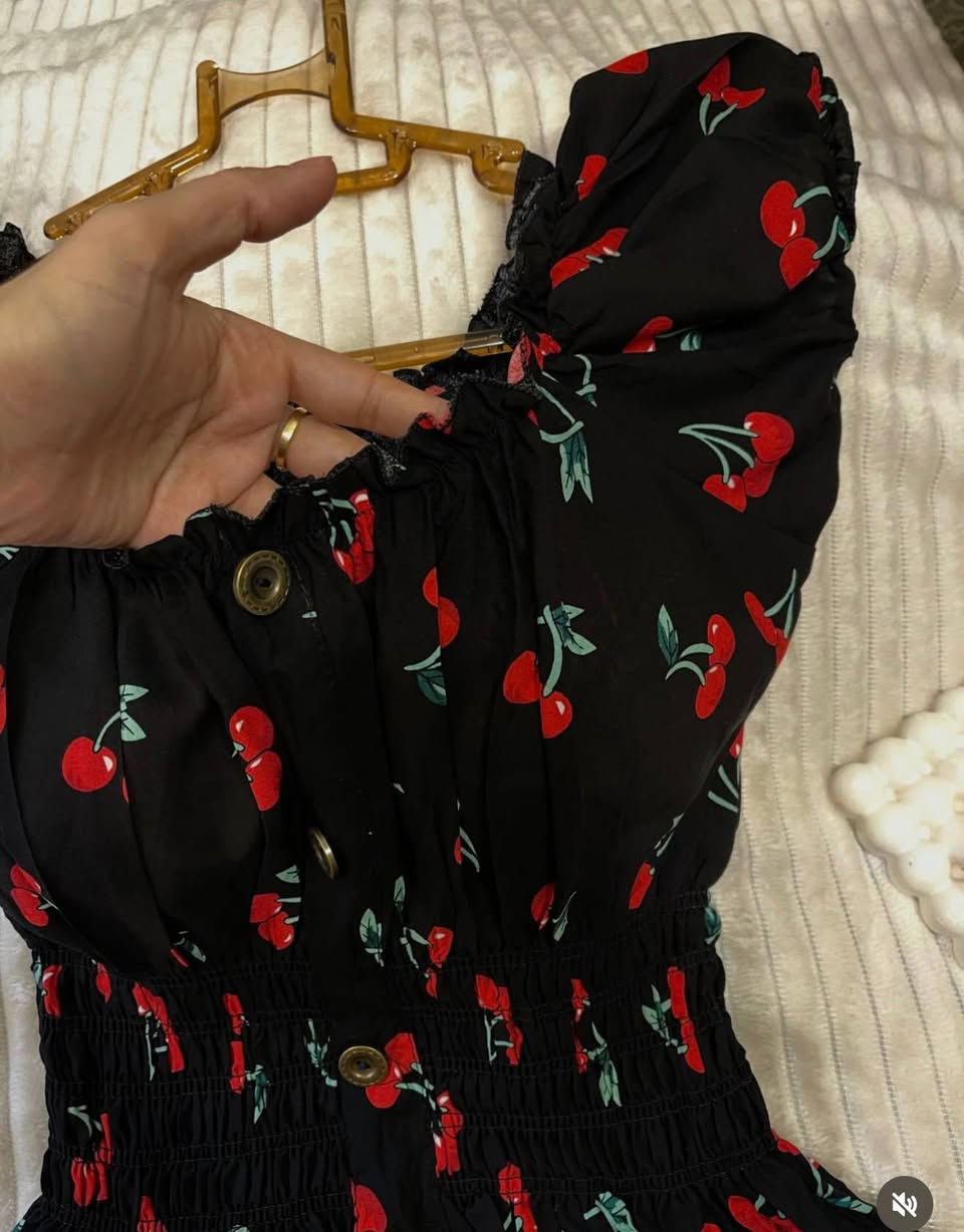 فستان كرز • قماش كشمير • فري سايز ٤٠-٨٥