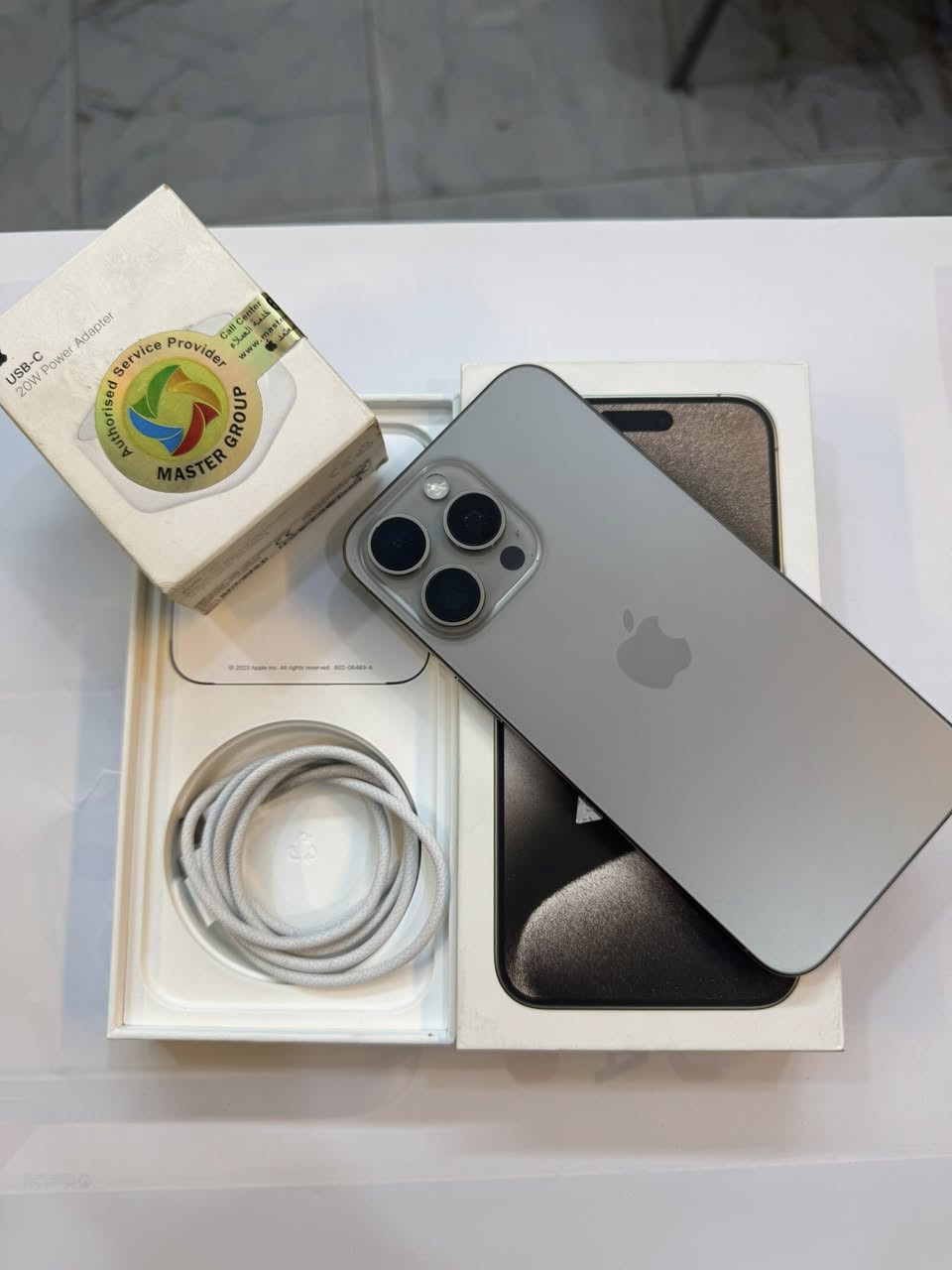 ايفون 15 برو ماكس 256 بطارية 92% نضافه 100% دبل سيمكارت خطين كامل ملحقات الاصلية شركة ماستر الاصلي السعر مناسب *********** العنوان القطاع شارع السوك مجاور عوينات الكرار مركز الشمس