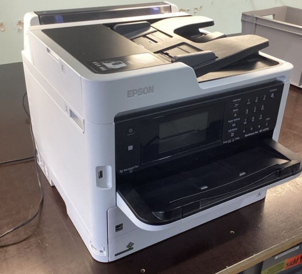 ☺️EPSON WorkForce WF-c5710😊 مستعمل بنظافة وعمل مئة بالمئة أستنساخ - طباعة - سكنر. -فاكس طابعة أيبسون متطورة حديثة تجمع المتانة وتقليل تكلفة الطباعة .. حجم الورق A4 هيد ٤ لون فيدر قلاب وجهين ملون -عادي (أحادي اللون) أستنساخ المستمسكات على الوجهين دوبليكس دقة صورة الاستنساخ دي بي آي ٦٠٠/١٢٠٠ الطباعة طباعة ورق الفوتو (ورق الصور ) دقة عالية جداااا في طباعة الصور تصل حتى ١٢٠٠/٤٨٠٠دي بي آي طباعة ورق المكربن (ورق الوصولات) سرعة الطباعة ٢٤ صفحة بالدقيقة طباعة دوبليكس على الوجهين الطباعة دايركت واي فاي مباشر بدون كيبل سكنر ارشفة. للملازم والمستمسكات لغة عربية **إذا كنت صاحب هذا الإعلان وتريد حذفه لأي سبب، رجاءا أرسل رسالة إلى الدعم الفني**